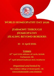 World Homeopathy Day 2026, hosted by The London College of Homeopathy, UK, celebrates the unifying spirit of homeopathy — a system of healing that transcends cultures, nations, and generations. With the theme “Harmony through Homoeopathy: Healing Beyond Borders”, this global gathering aims to foster collaboration, inspire innovation, and strengthen the evidence-based foundation of homeopathic medicine.